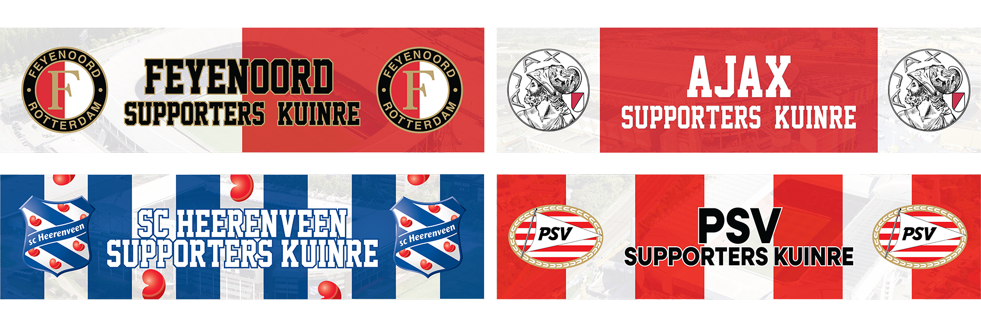 Op dit moment staan er borden van 5 clubs op de planning om langs het hoofdveld te plaatsen. De kosten van de borden worden verdeeld door alle supporters van desbetreffende club die lid zijn van de WhatsApp groep. Deelnemen aan de groep kan door te klikken op de link van je favoriete club: